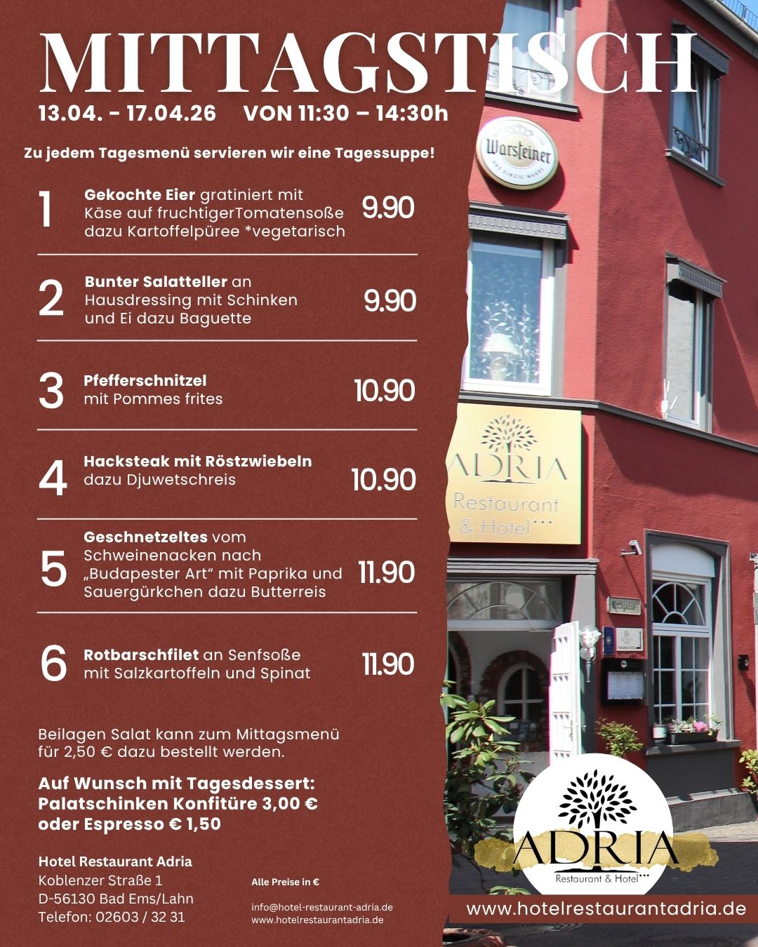 #Mittagsmenü #Wochenkarte #restaurantadria #Mittagstisch #mittagsmenü #valentinstag